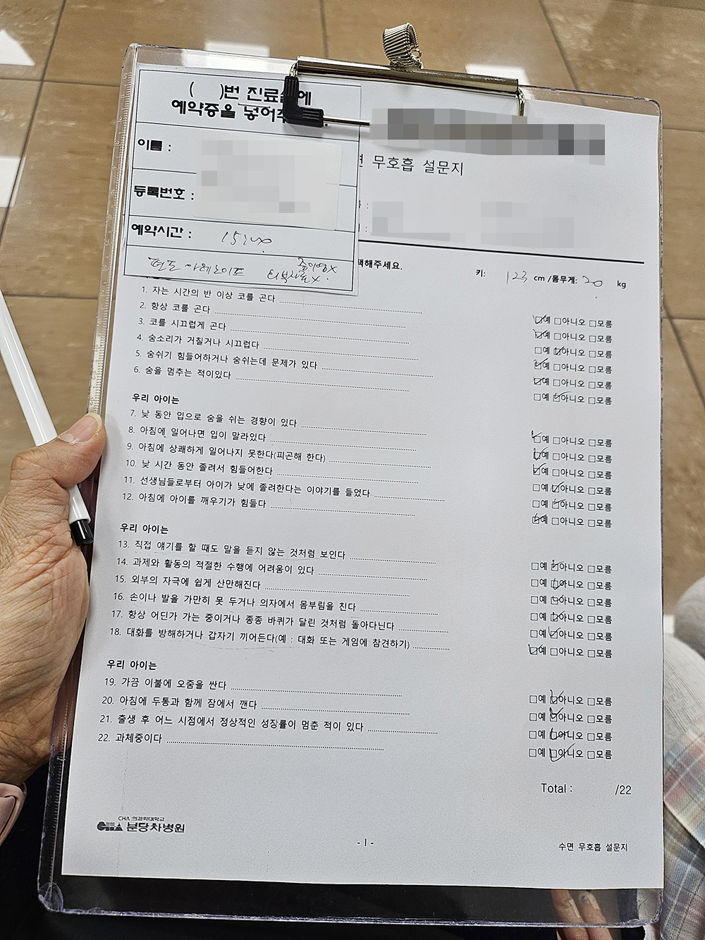 번호가 호명되어 간호사에게 가니 설문지를 작성하라고 하더라고요.