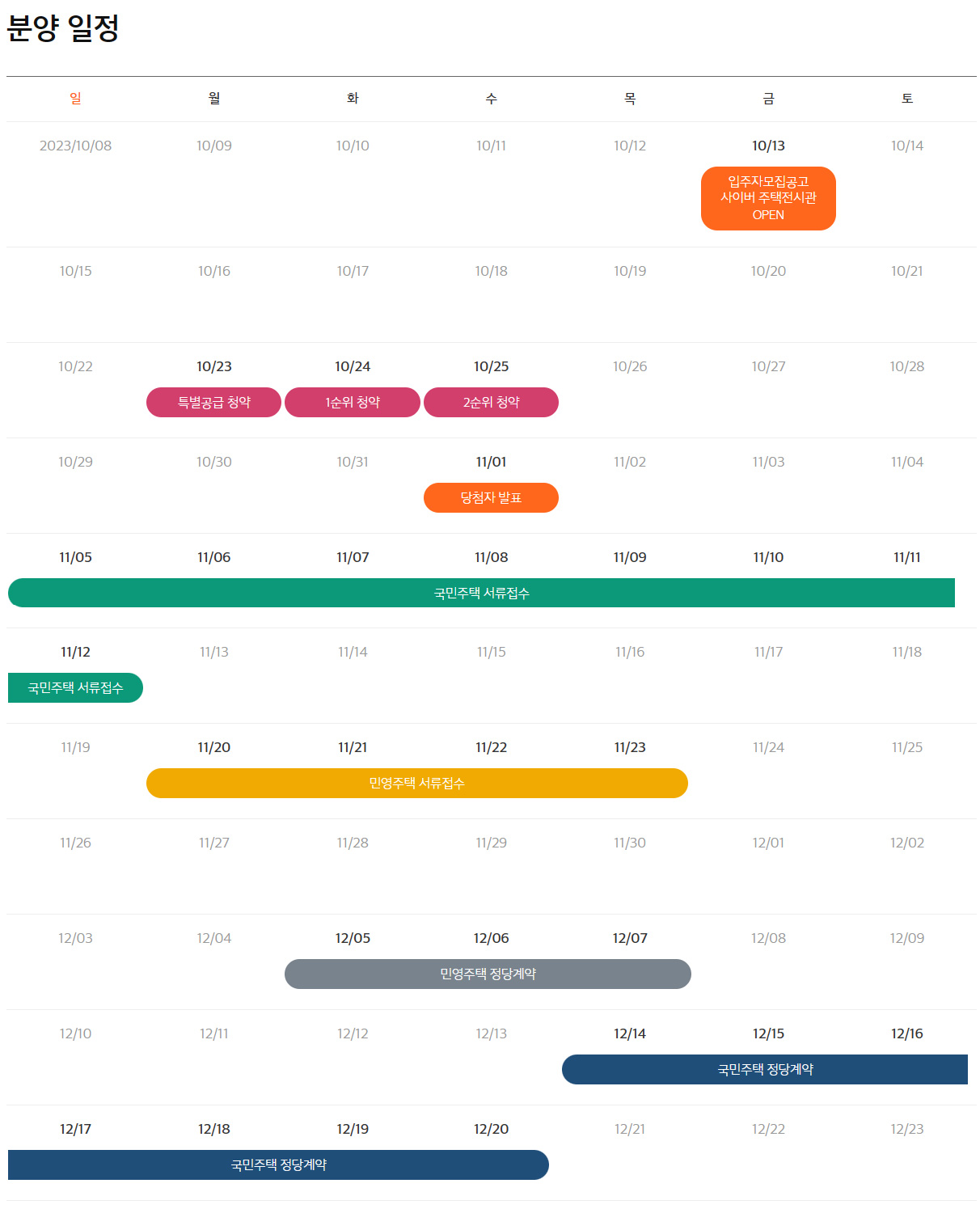 특별공급 청약일 :10월 23일