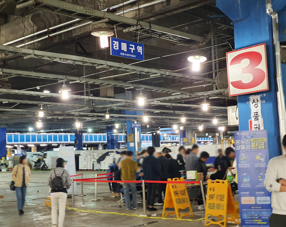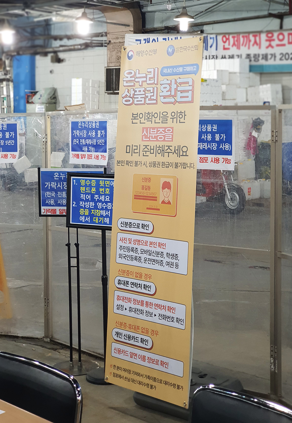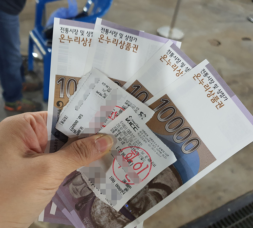 경매구역이라 써 있어서 경매하는 사람들인줄 알았더니 온누리상품권 받는 줄이었어요.