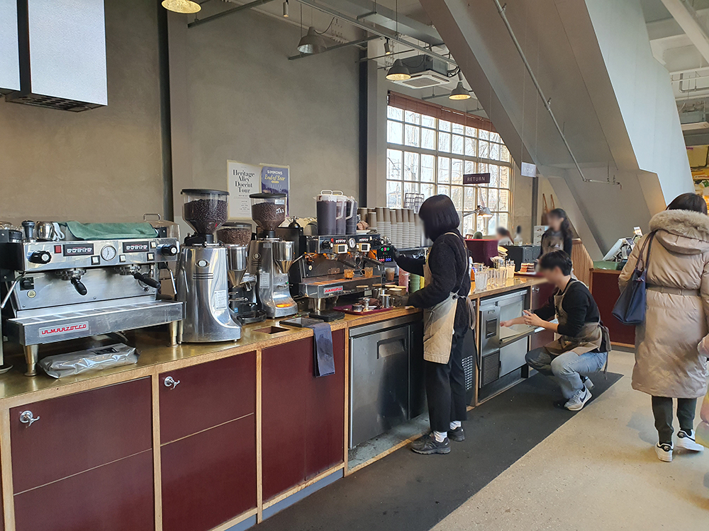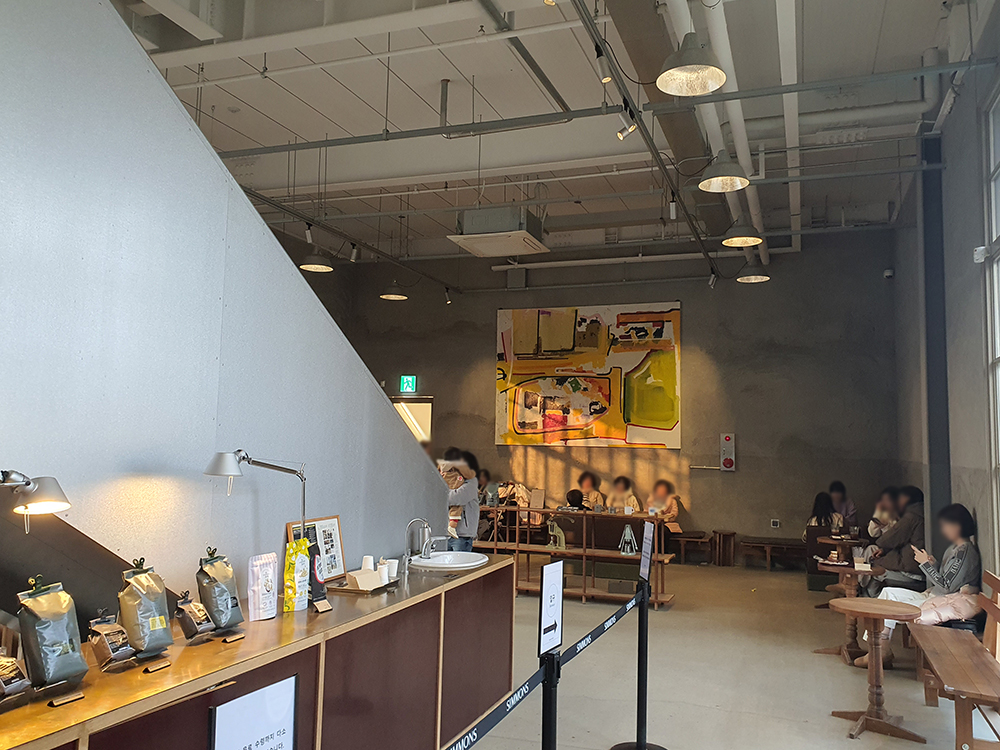 커피샵과 시몬스 전시장이 이어져 있어요.