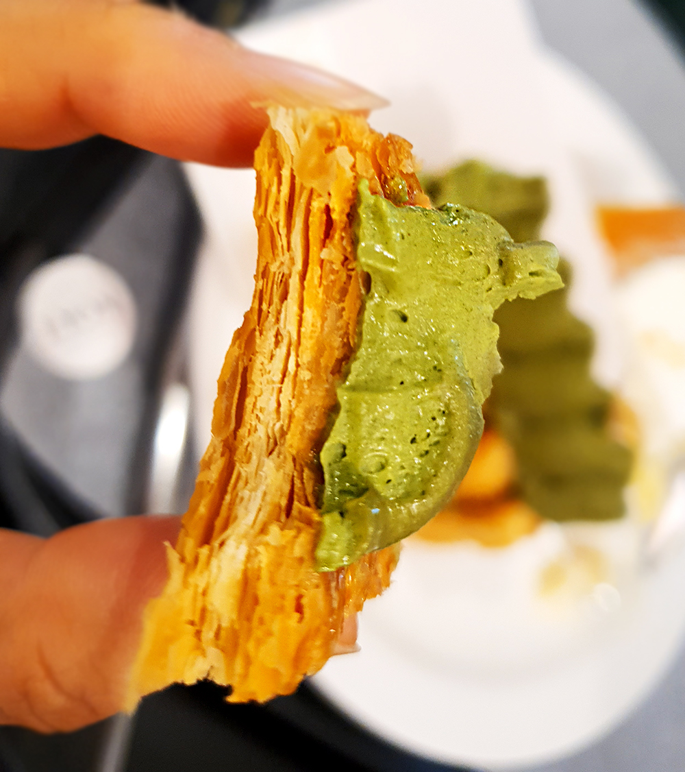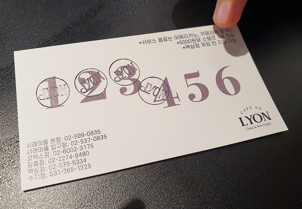 말차 밀푀유 7,200원, 알자스 치즈 7,200원, 오 쏠 라떼 6,300원를 시켰더니 스탬프를 적립시켜주네요.