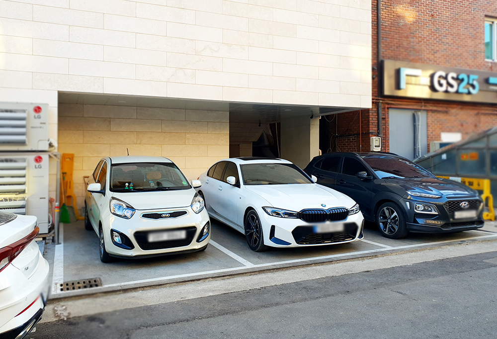 주차공간이 있긴한데 협소합니다.