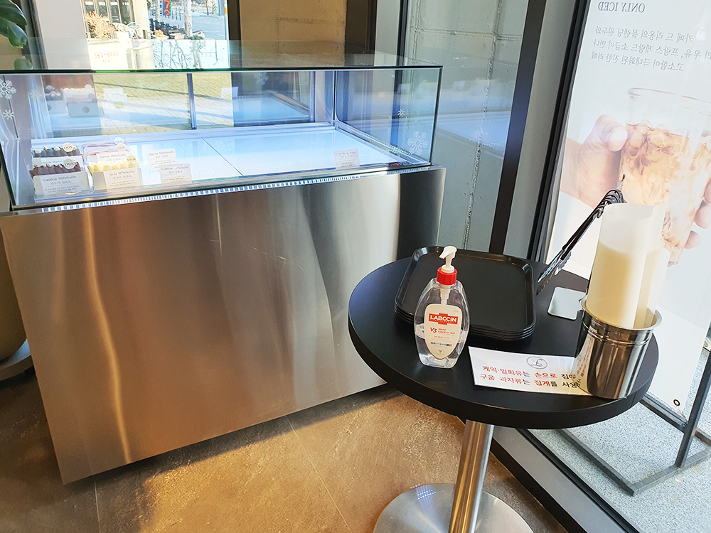 손소독 후 케이크/밀푀유는 손으로 집고 과자류는 집게로 담습니다.