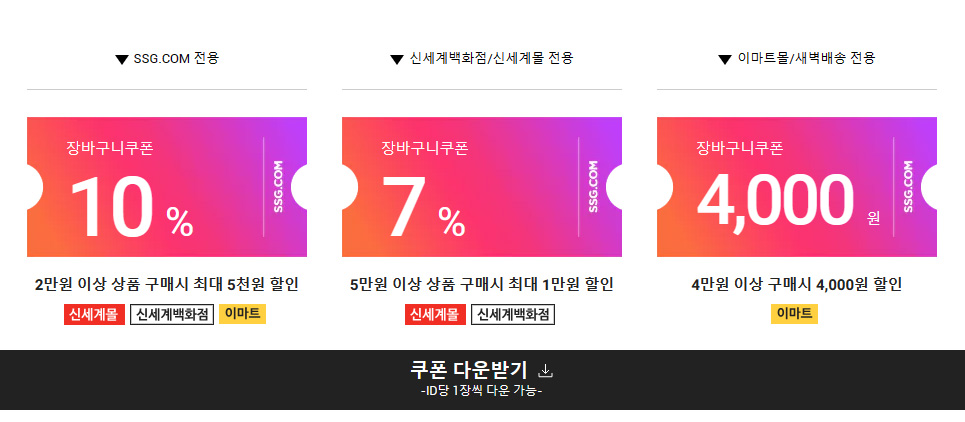 신세계백화점/신세계몰 7% 장바구니 할인쿠폰