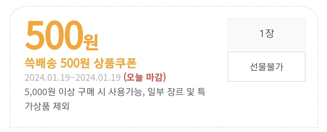 저는 쓱배송 500원 상품쿠폰이 당첨되었어요.