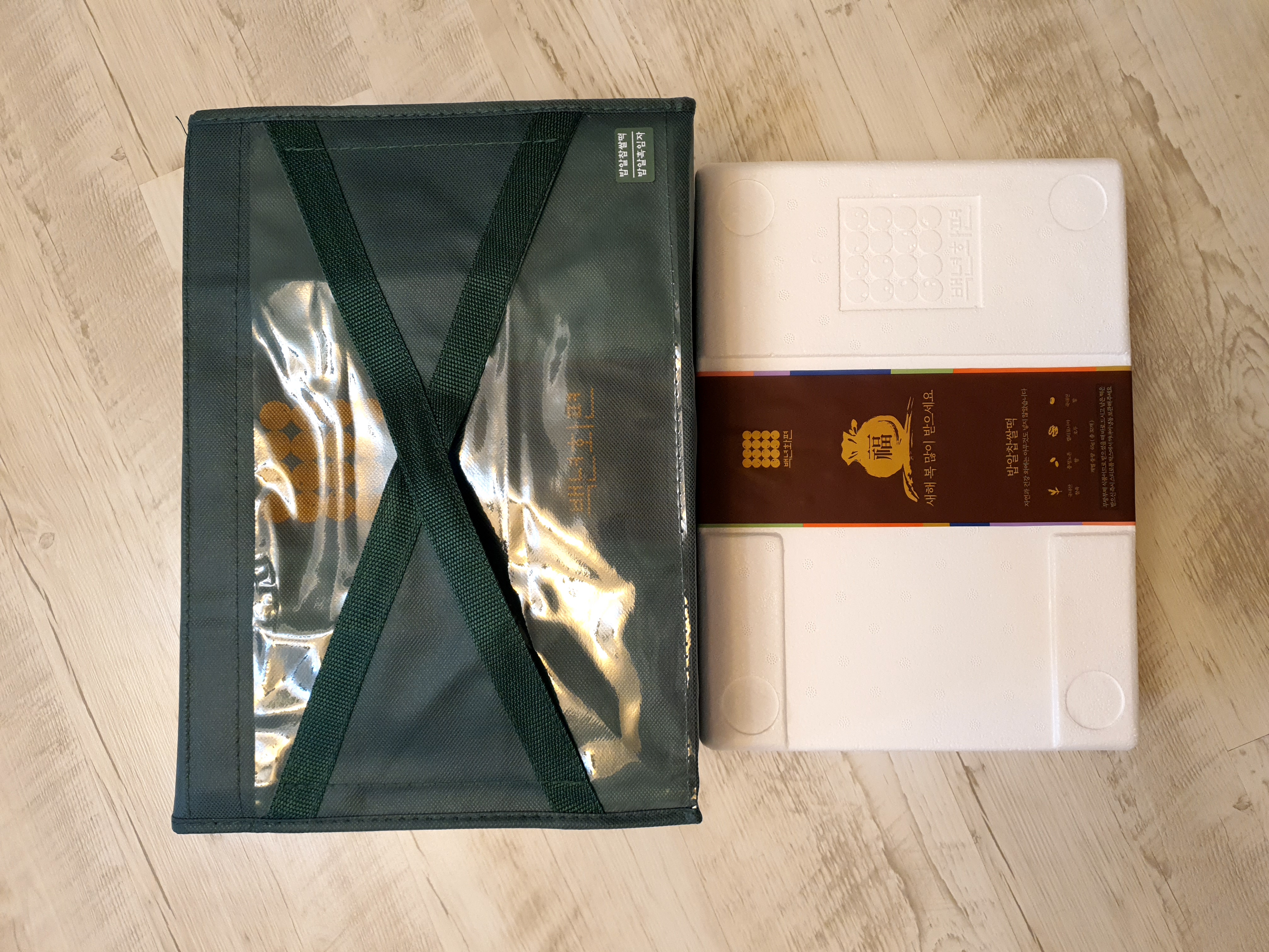 선물세트는 이렇게 부직포안에 두통이 들어있고요.