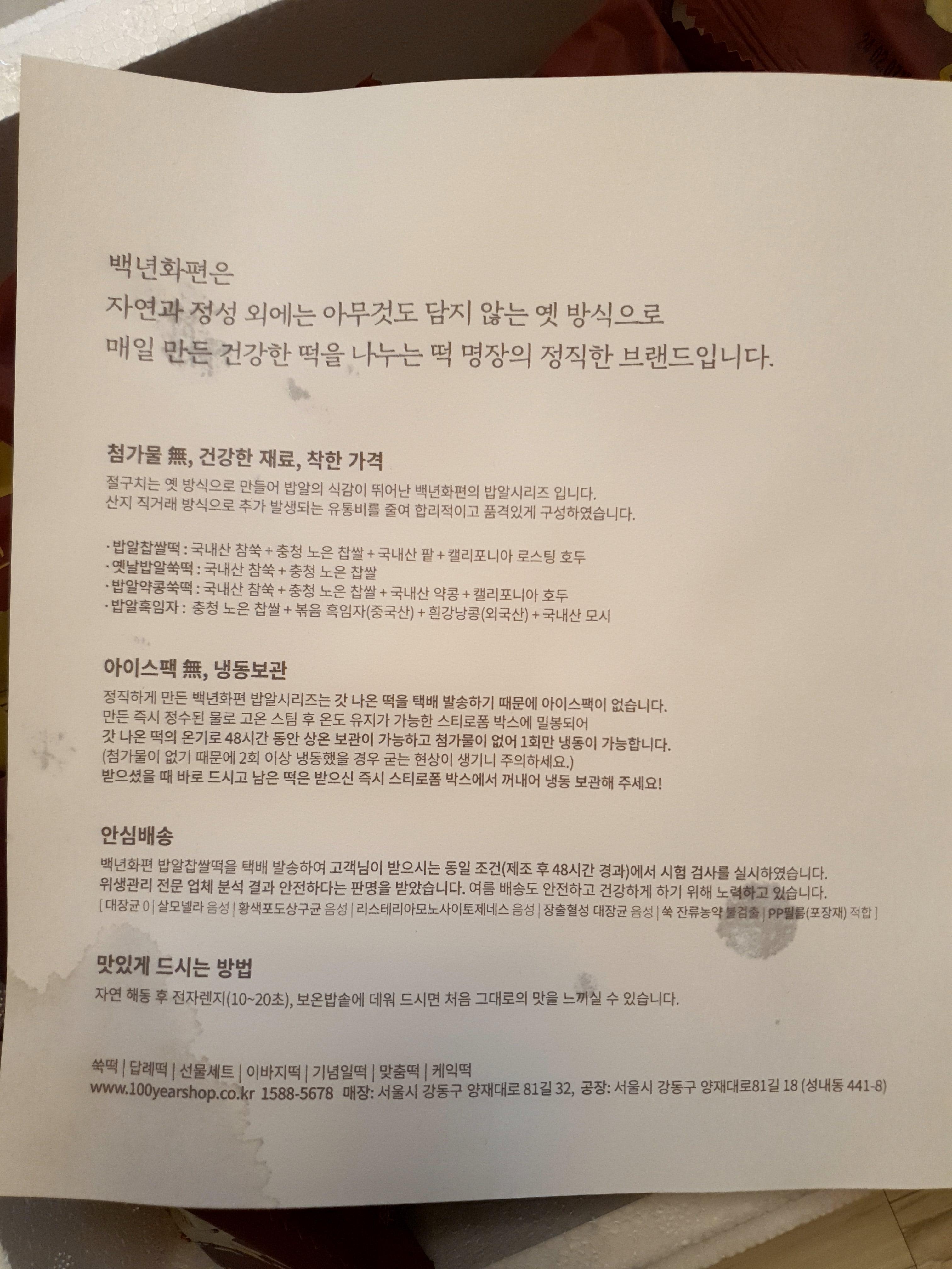 명절 때마다 백년화편에서 떡 선물을 자주 한다.