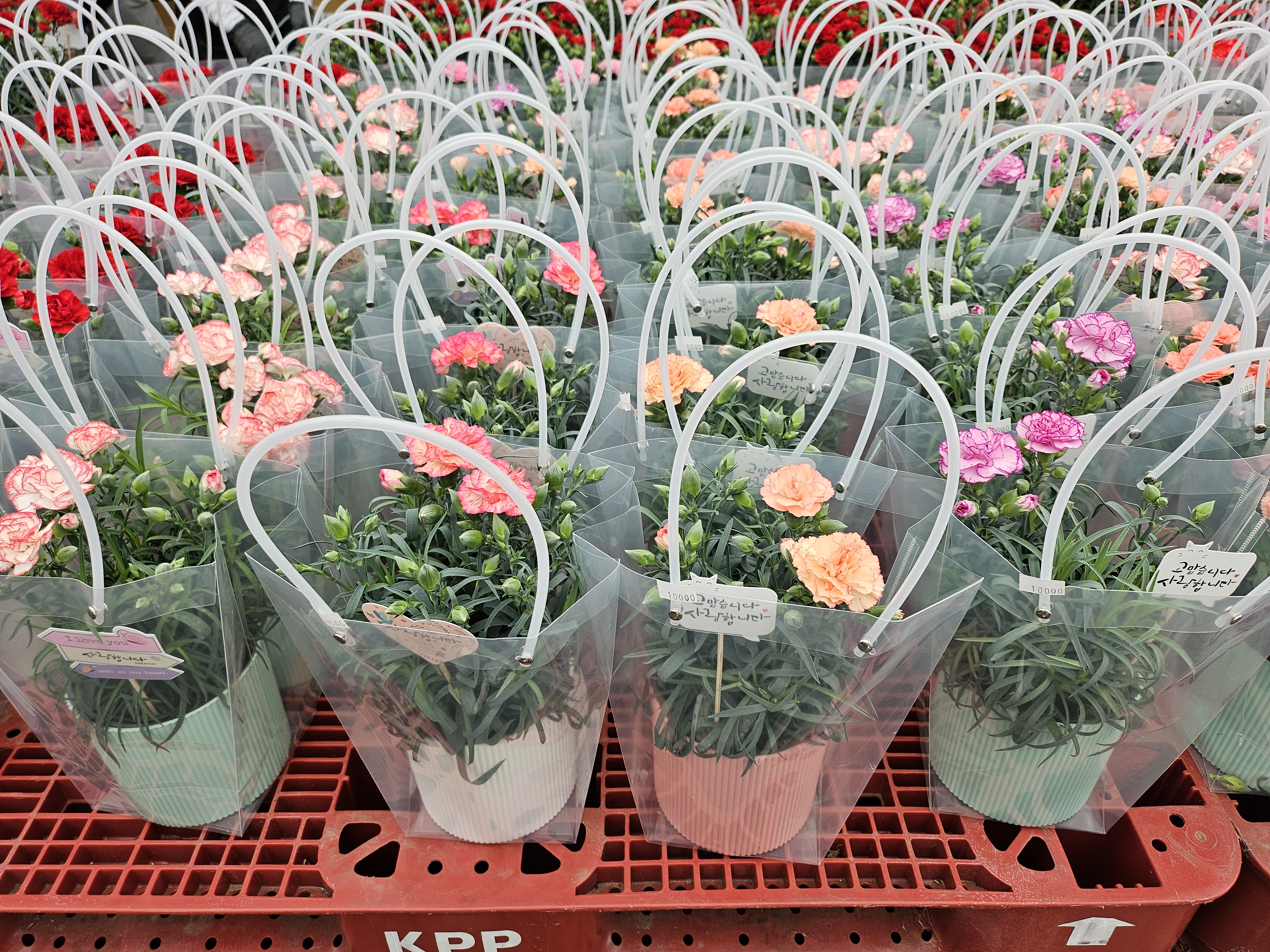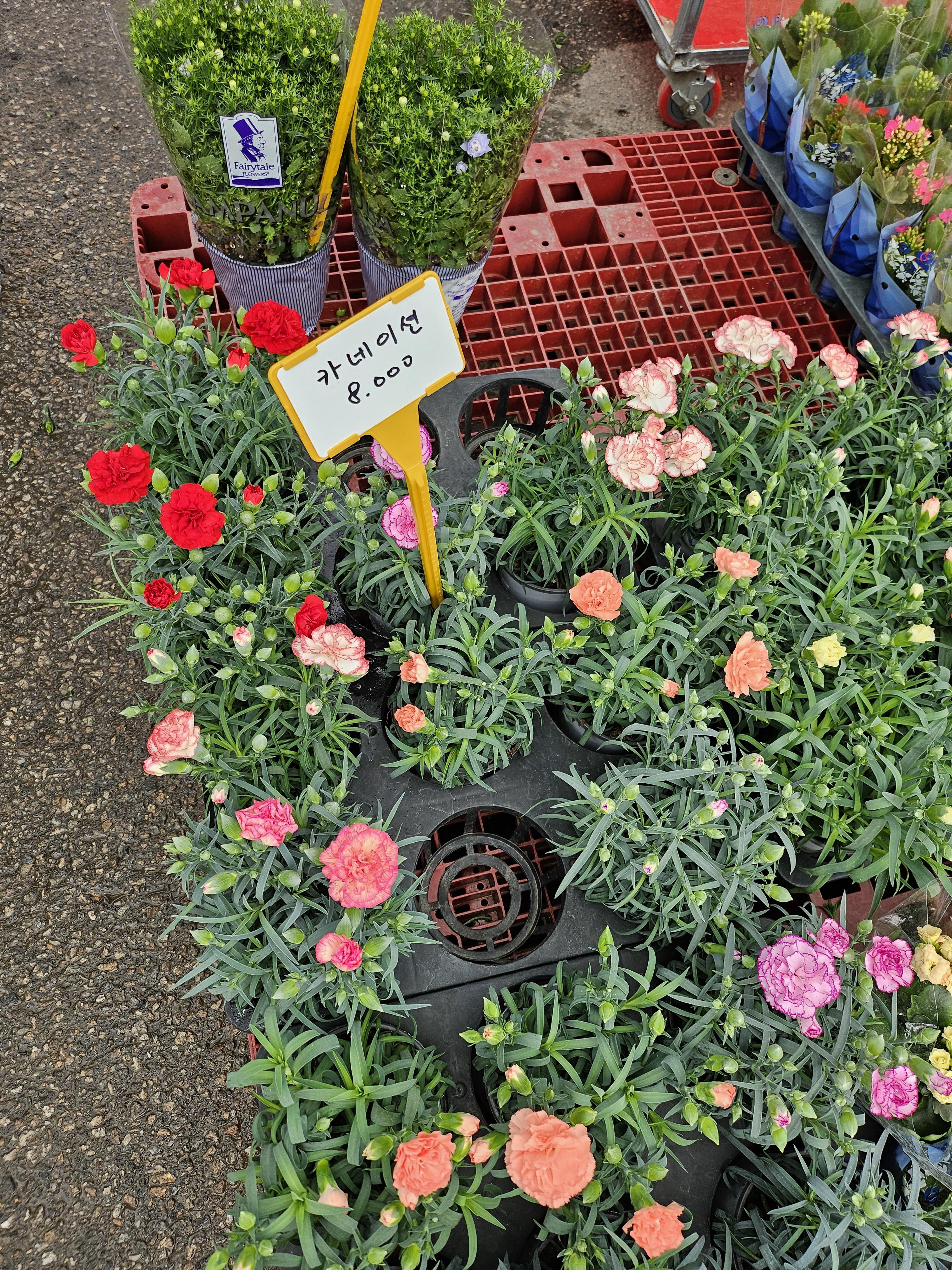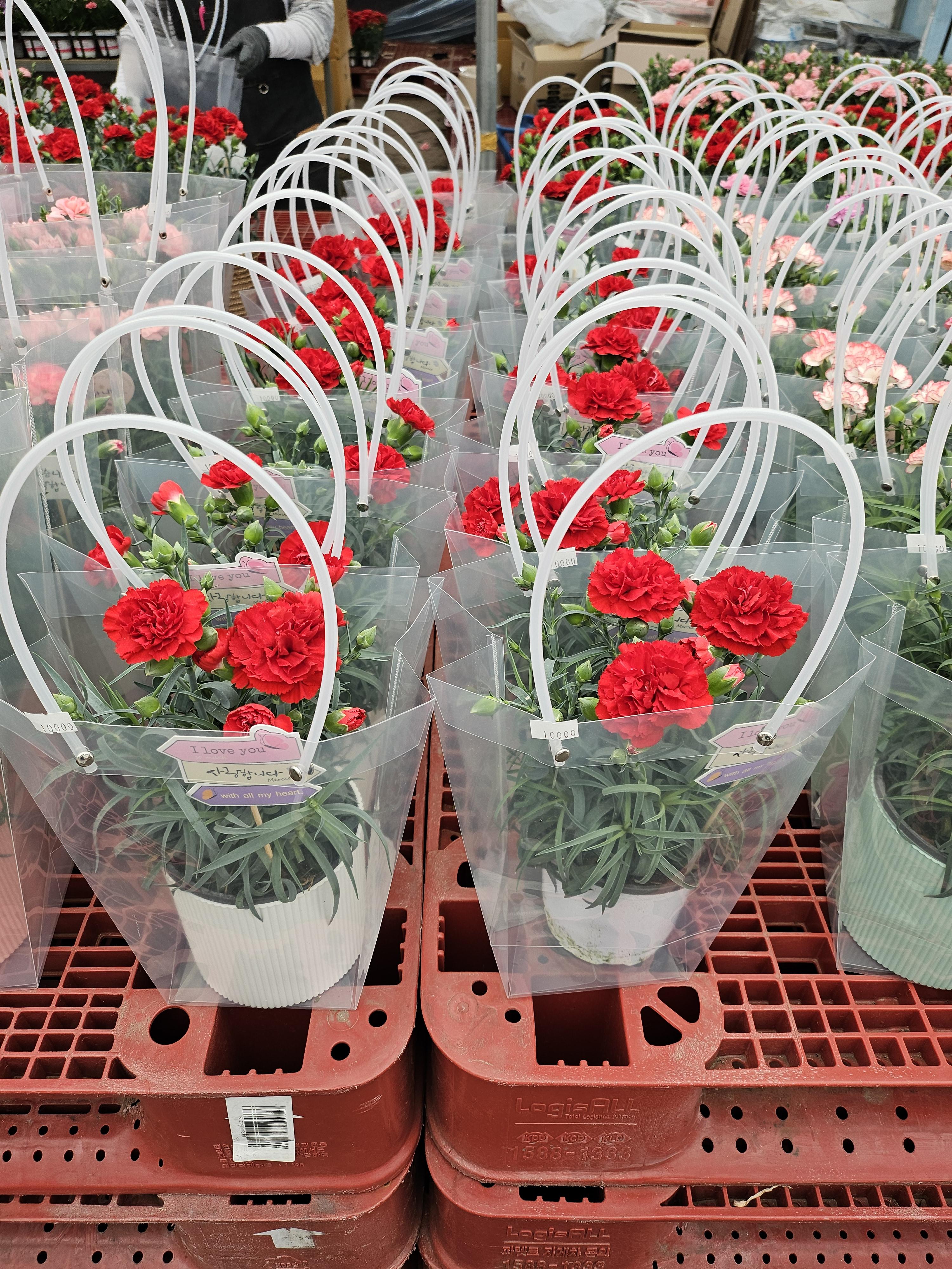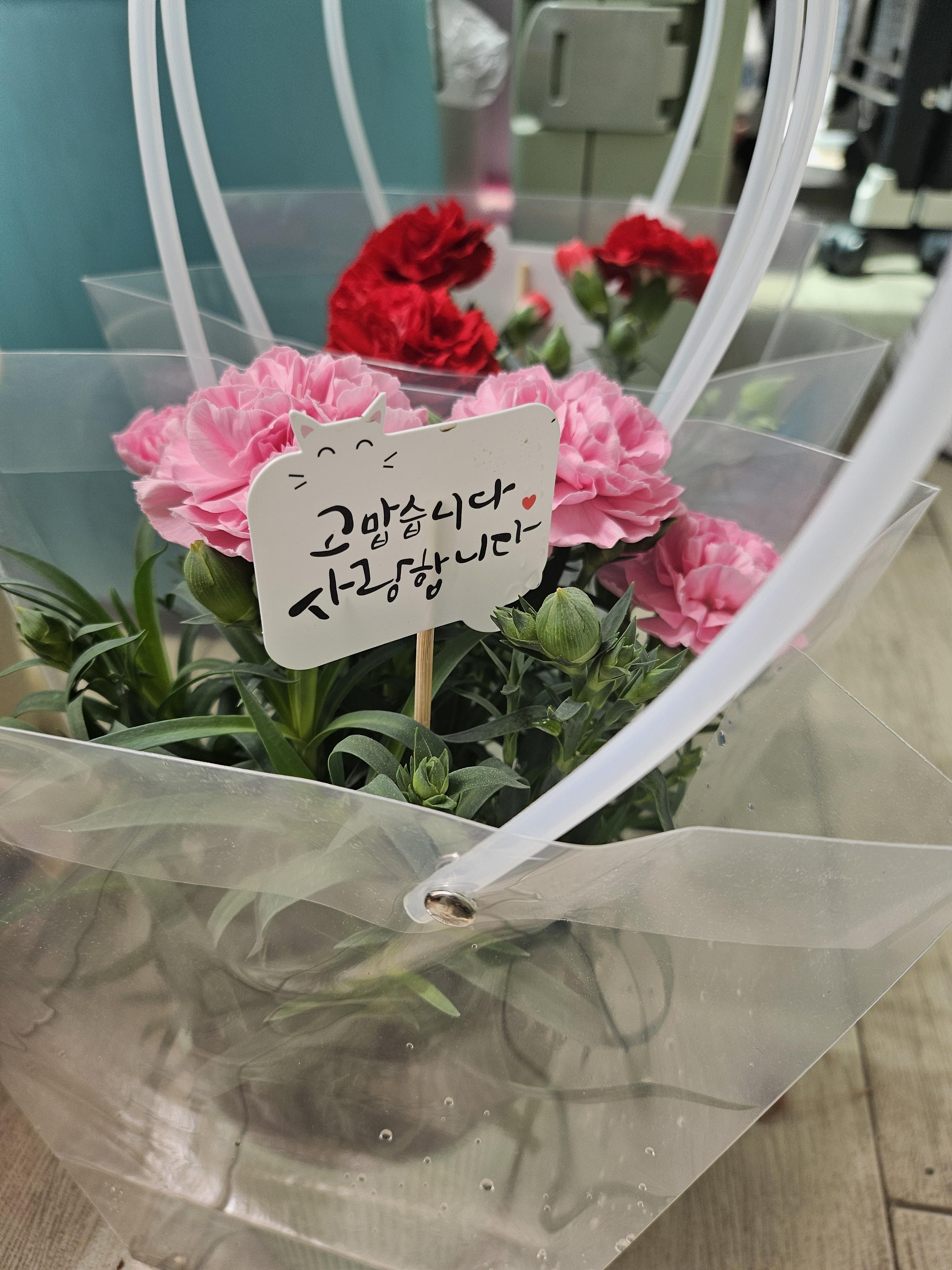 그래서 카네이션도 화분으로 알아봤어요. 그게 실용적일듯해서.