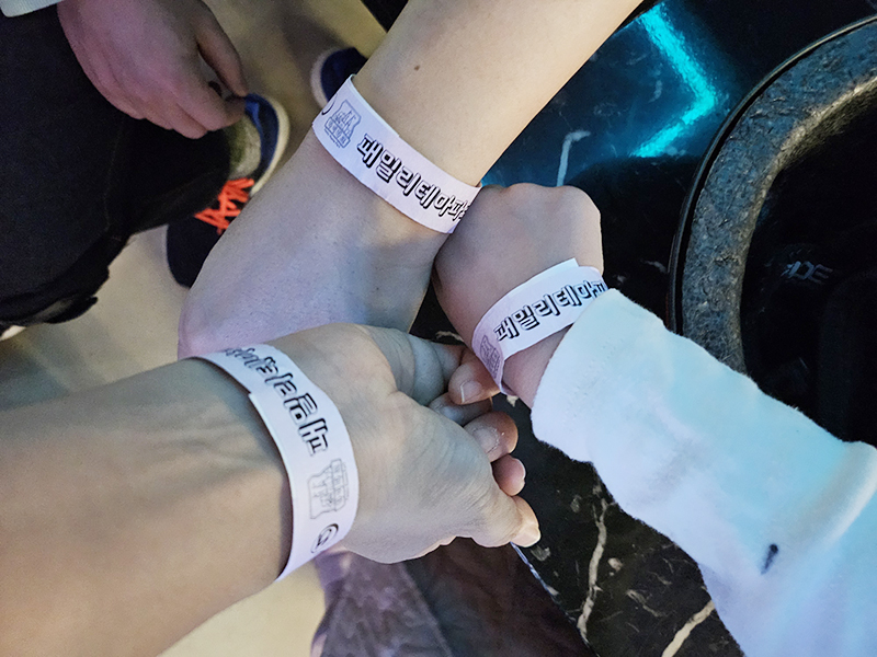 결제내역을 확인 후 손목에 입장띠를 해주고요.