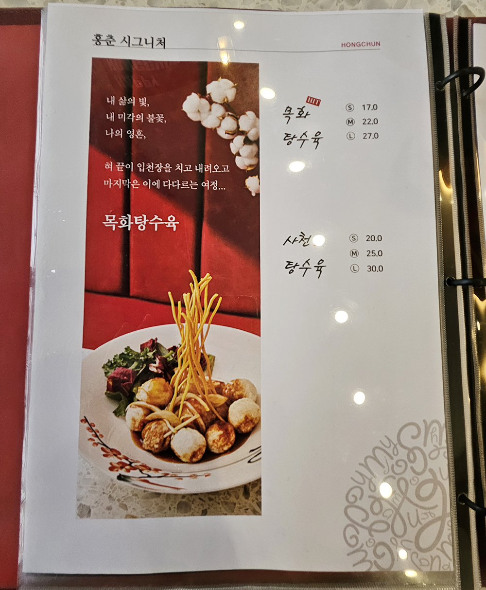 목화탕수육 소17,000원 / 중 22,000원 / 대 27,000원