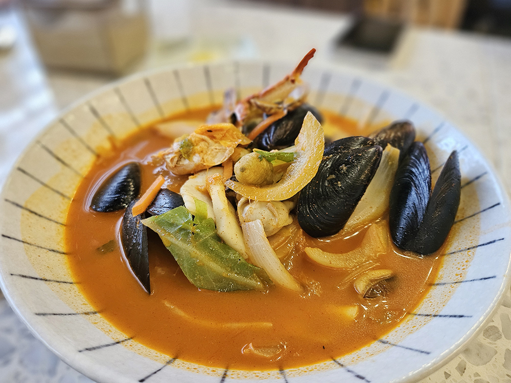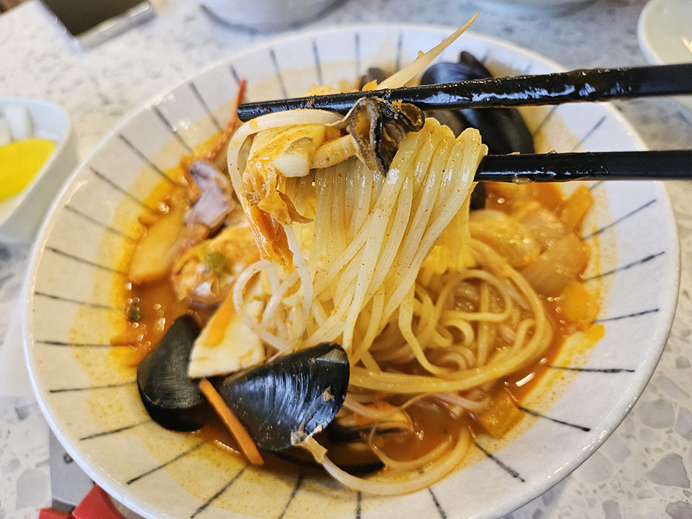 국물이 사골맛이 나서 조금더 부드럽긴한데 국물 먹을떄마다 홍합껍데기가 씹혀서 마이너스.