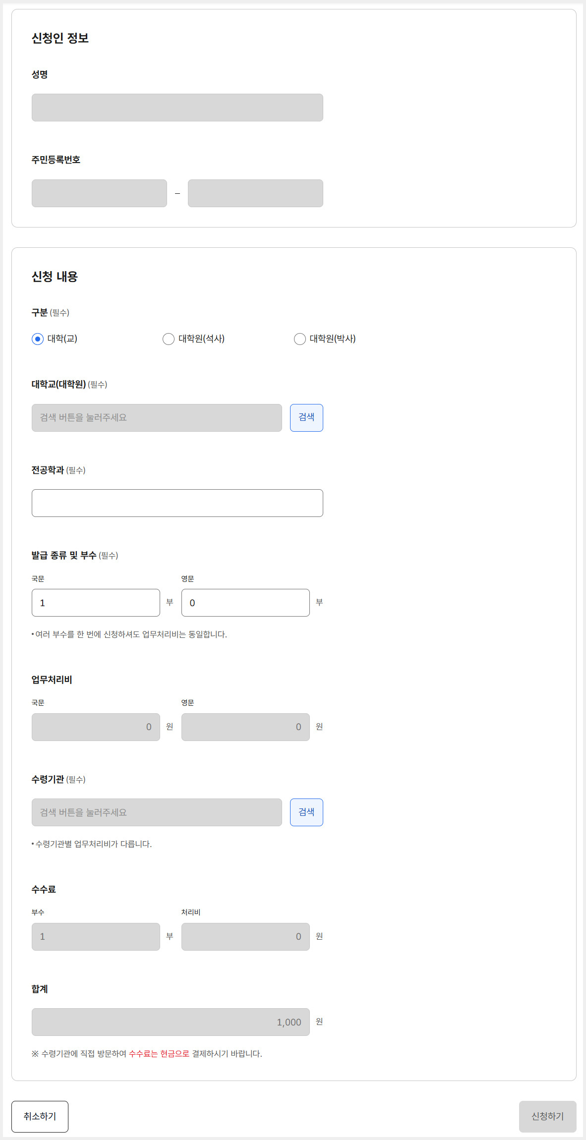 대학(교) 졸업(예정)증명서 발급