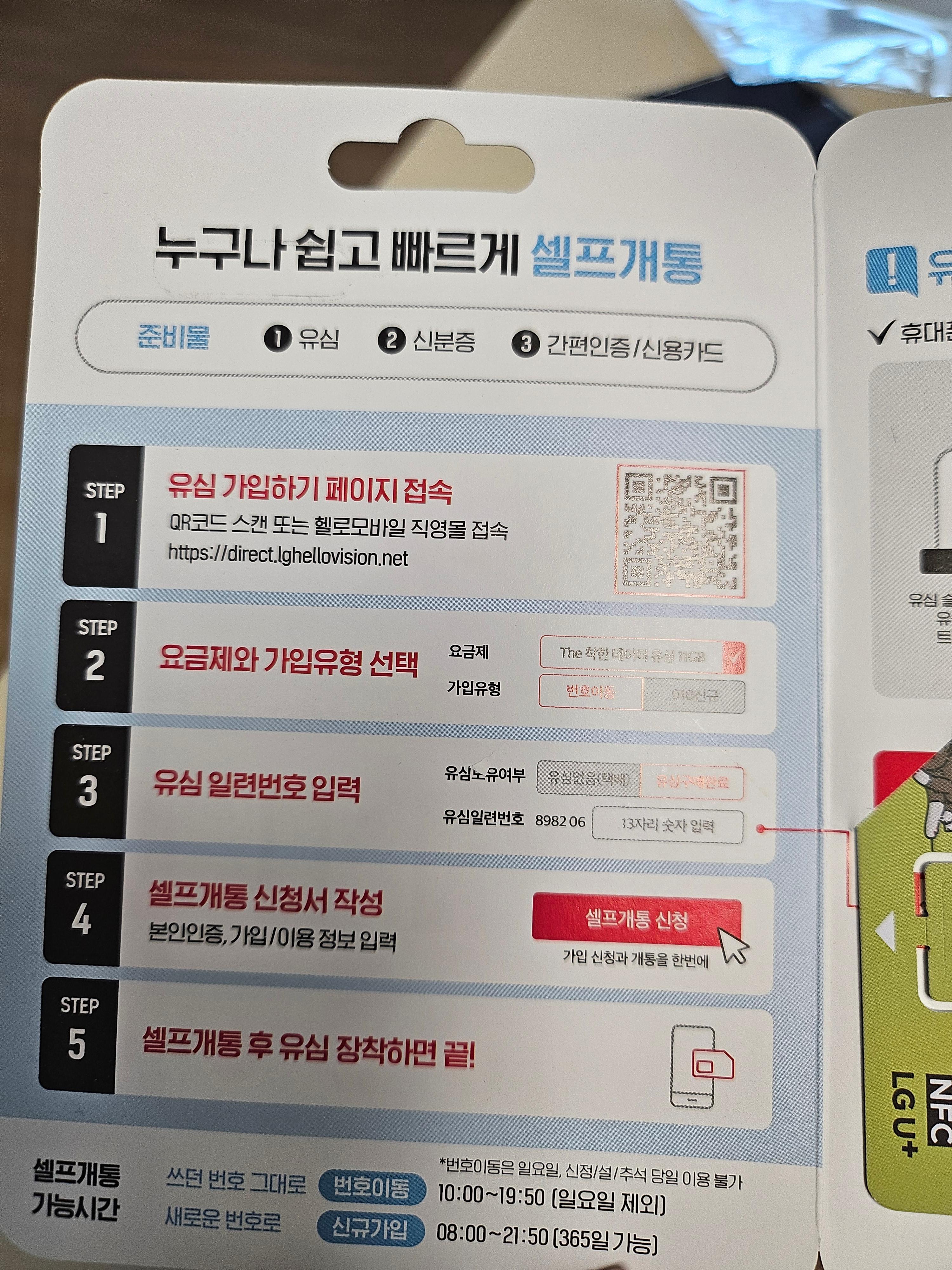 4. 셀프 개통 후 유심 장착!